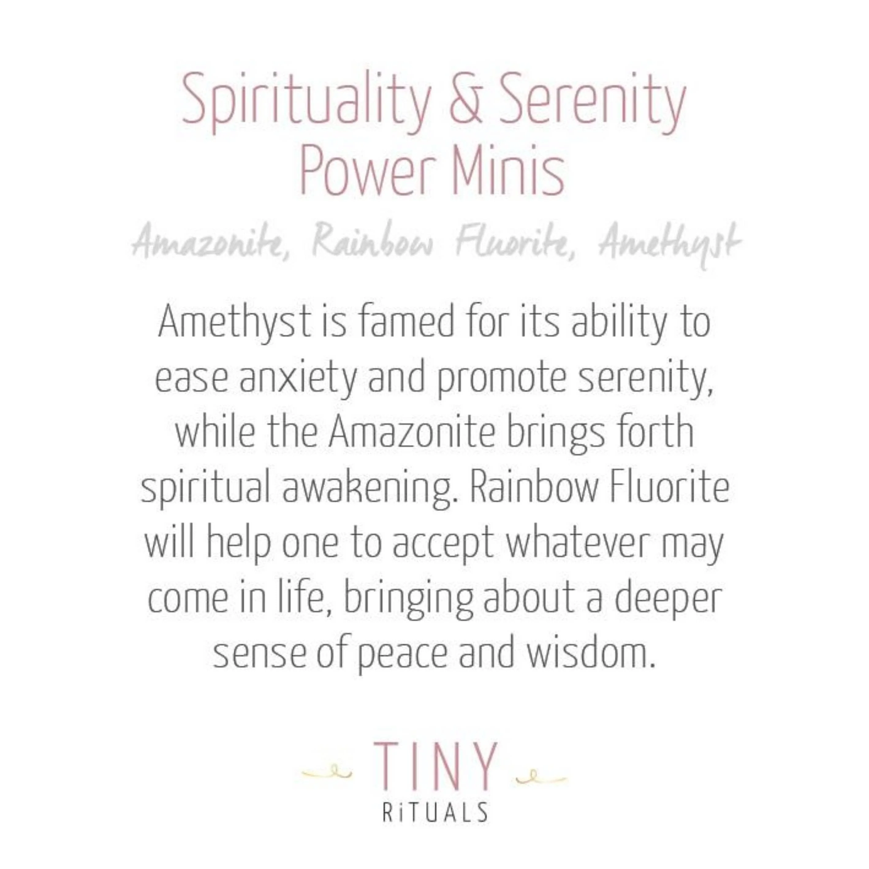 Boost your serotonin levels across all realms with the stunning Spirituality and Serenity Pack. Amazonite, Amethyst, and Rainbow Fluorite come together to be more than just a pleasing color scheme. These three potent stones have been chosen for their ability to wash the soul with purity.