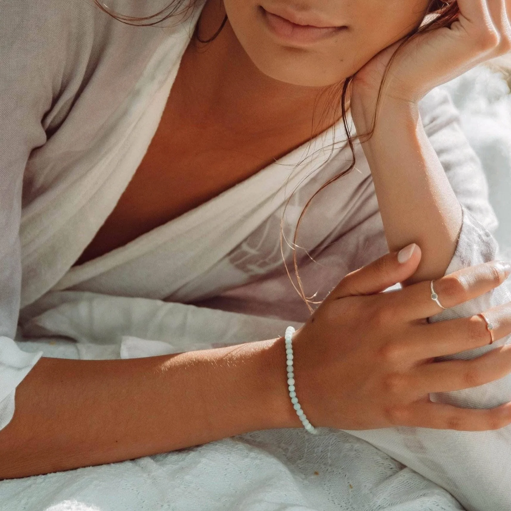 A song from the sea, a delight from the deep, and a cooling muse to calm the heart: the Aquamarine Energy Bracelet is a stone that invites you to go with the flow. A stone of natural justice, this is the perfect piece for those who seek quiet courage.