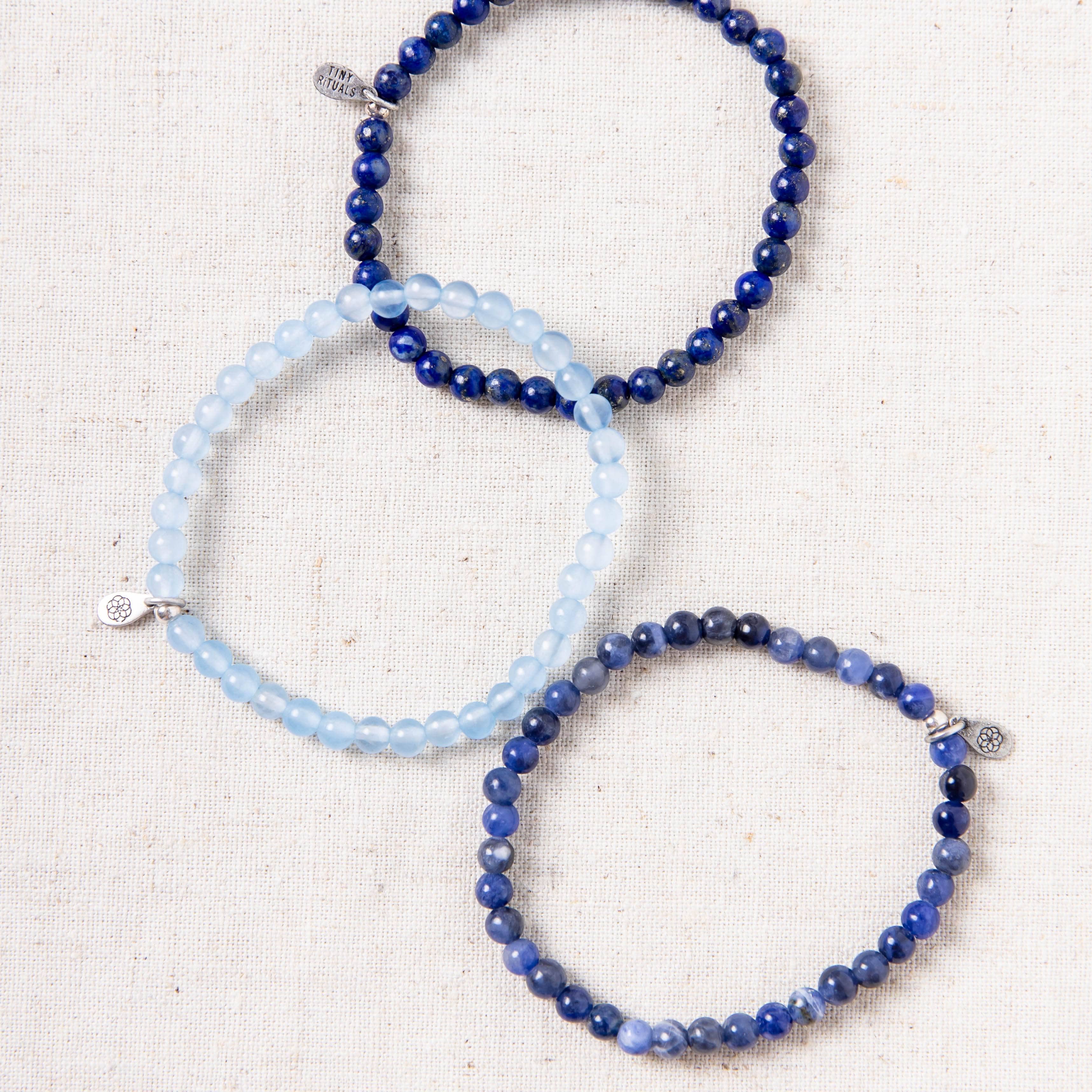 Never be afraid to stand up and sing out the truth. This Honesty and Truth Pack brings three unique and beautiful bracelets together that nurture strength of spirit, the calmness of the soul, and clarity of expression. Sodalite, Lapis Lazuli, and Light Blue Jade – together, they bring virtue to your voice.