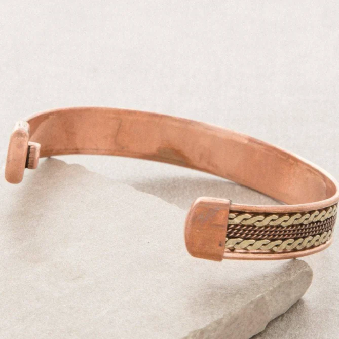 Warm and burnished and rich in magnetic moods, the Eternal Knot Copper Magnetic Bracelet is an awesome conductor of energy and brings sweet healing to the body and the mind. Marrying the healing benefits and natural pain relief of magnets, slip this copper bracelet upon your wrist and be bound to the light of our own unique destiny.