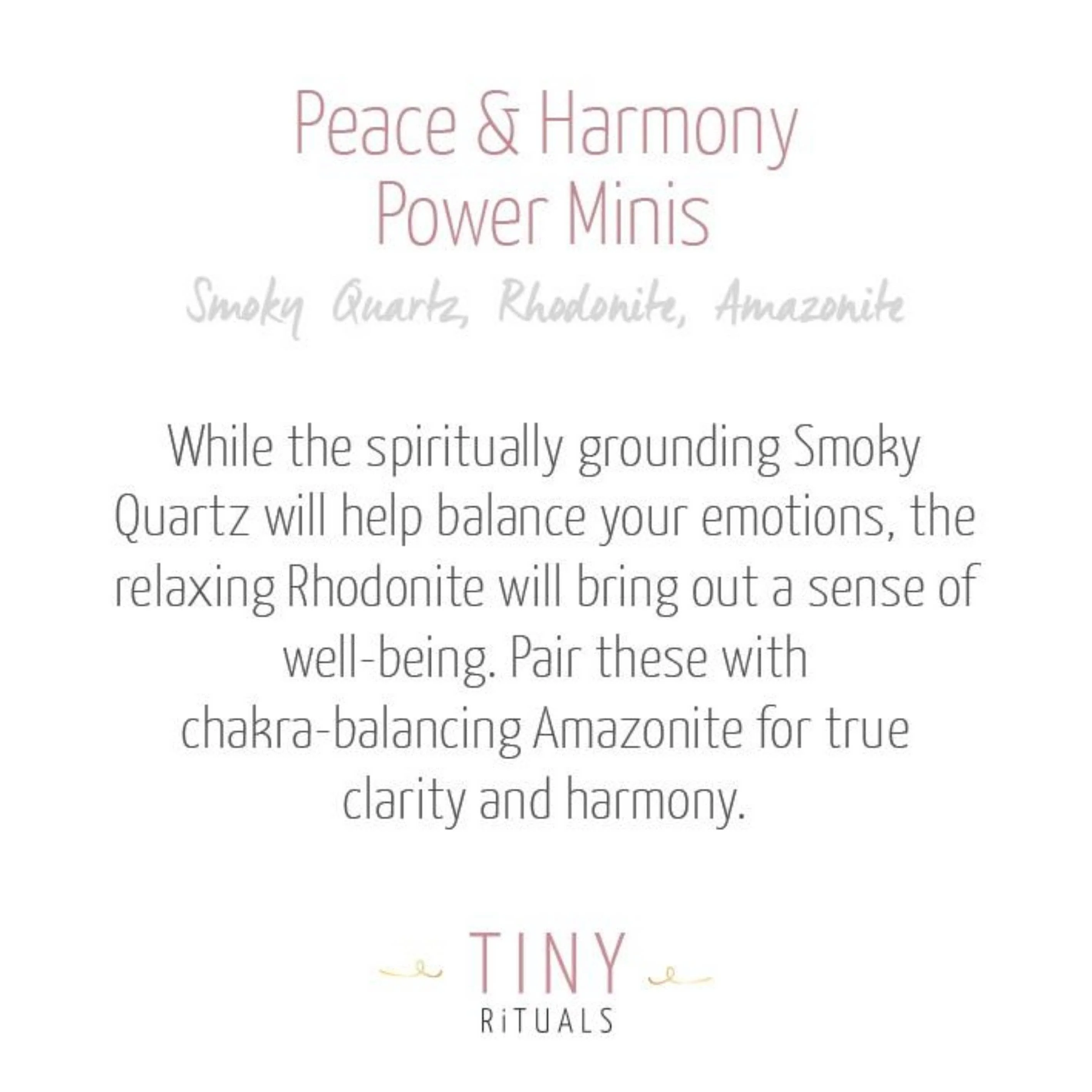 Let sweet serenity into your life with the Peace and Harmony Pack. Three soothing stone bracelets come together, bringing the soft spell of light and love. With Smoky Quartz, Rhodonite, and Amazonite flashing upon your wrist, it’s easy to find the path to higher consciousness.