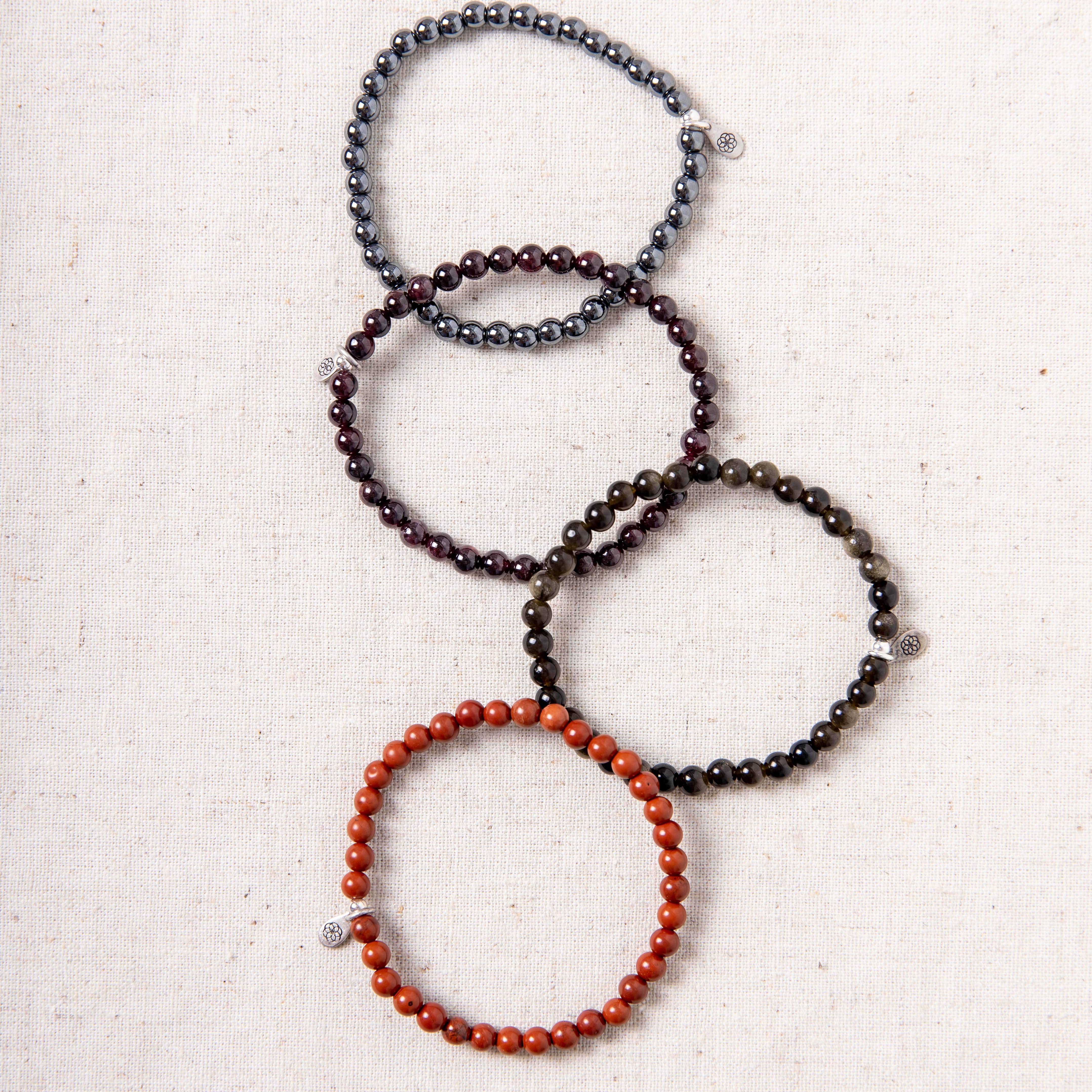 Without a solid foundation, the house falls down. Dig your roots in deep and grow strong with the healing properties of the Root Chakra Bracelet Set. Bringing together the stronghold stone of Hematite, the glory of Gold Obsidian, the glow of Garnet, and the flaming joy of Red Jasper, this pack is guaranteed to get your survival instinct streaming.